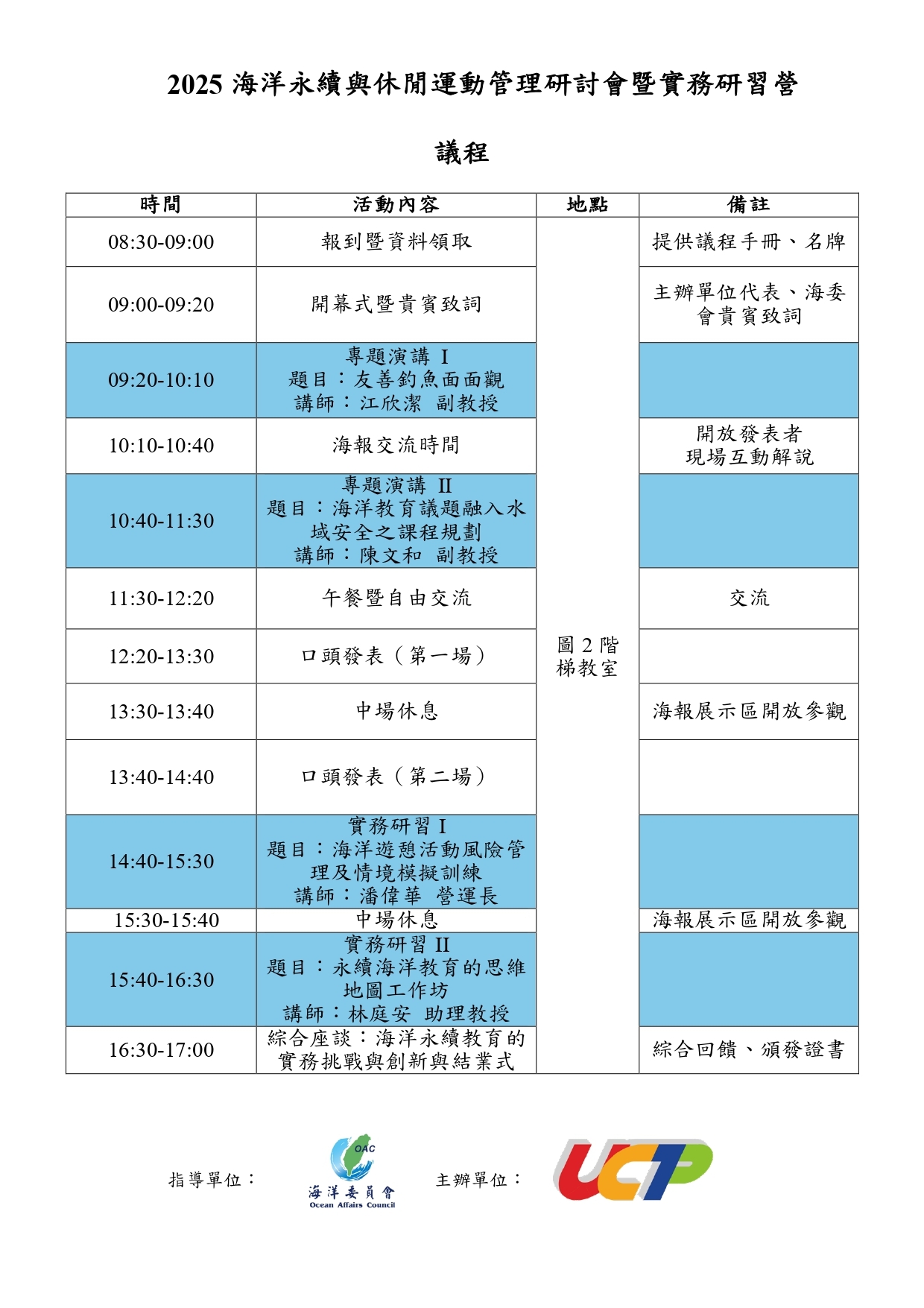 「2025海洋永續與休閒運動管理研討會暨實務研習營」議程表