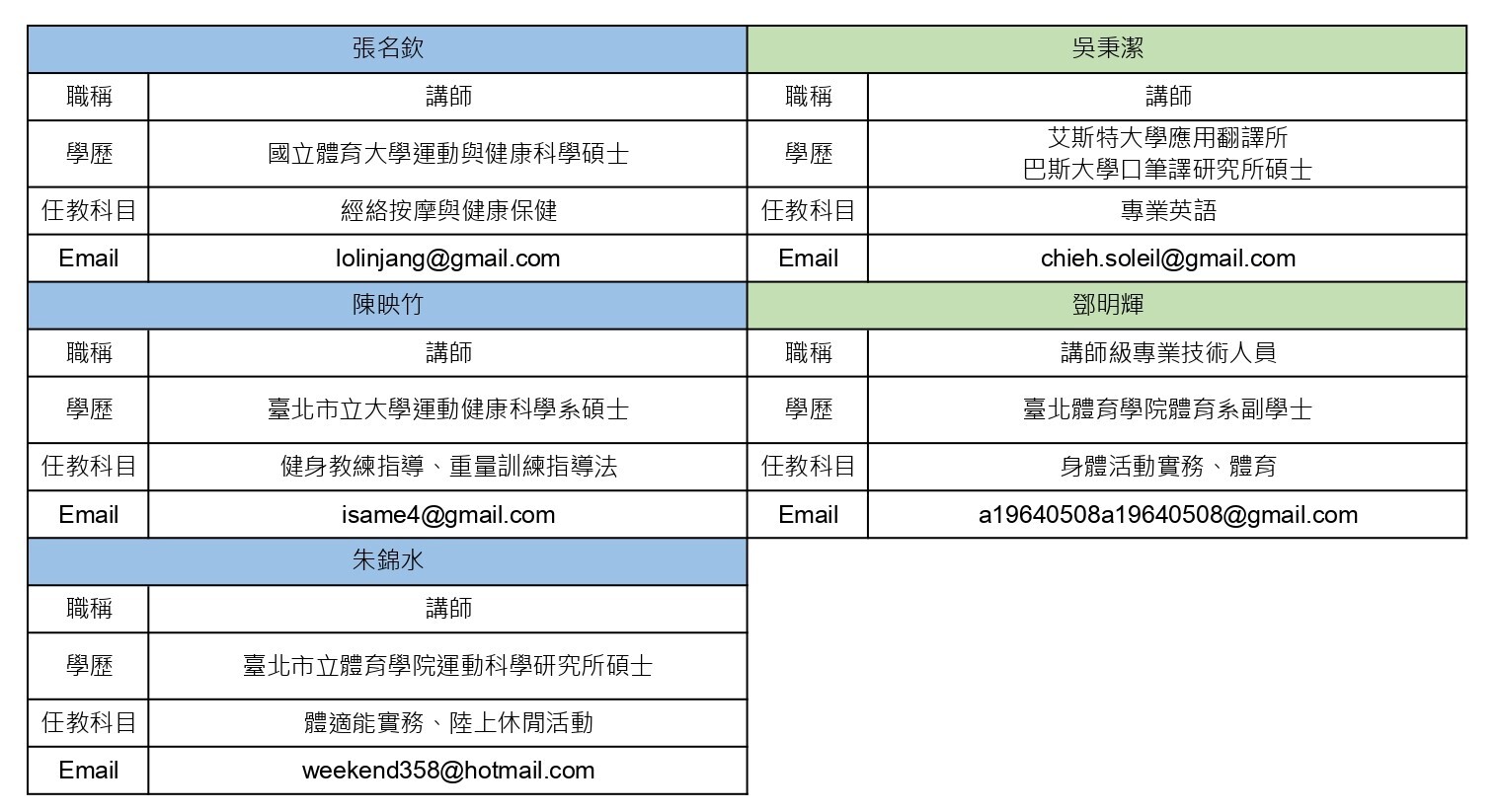 兼任師資 Adjunct Faculty